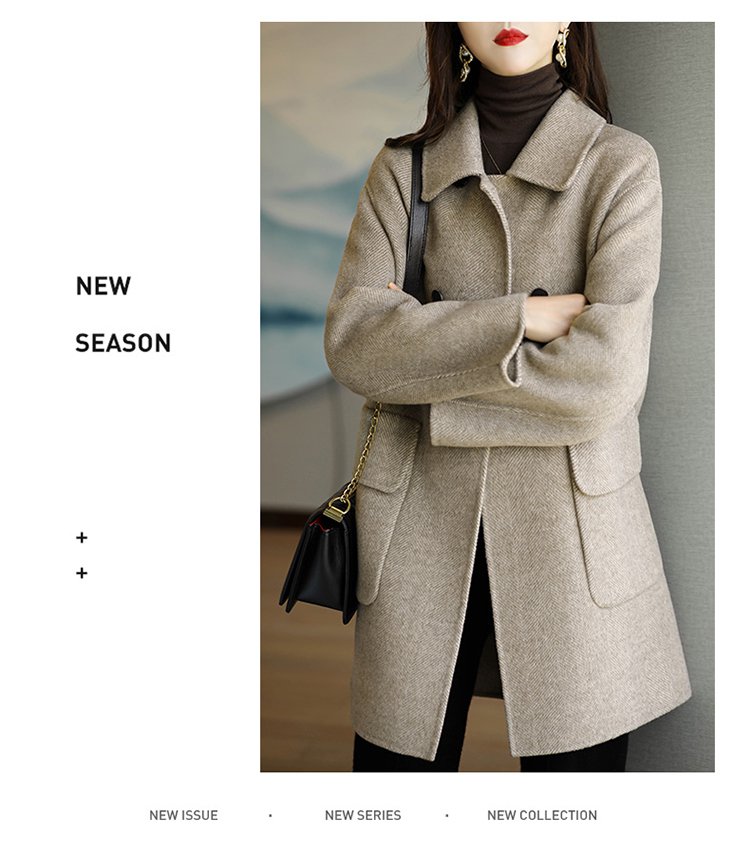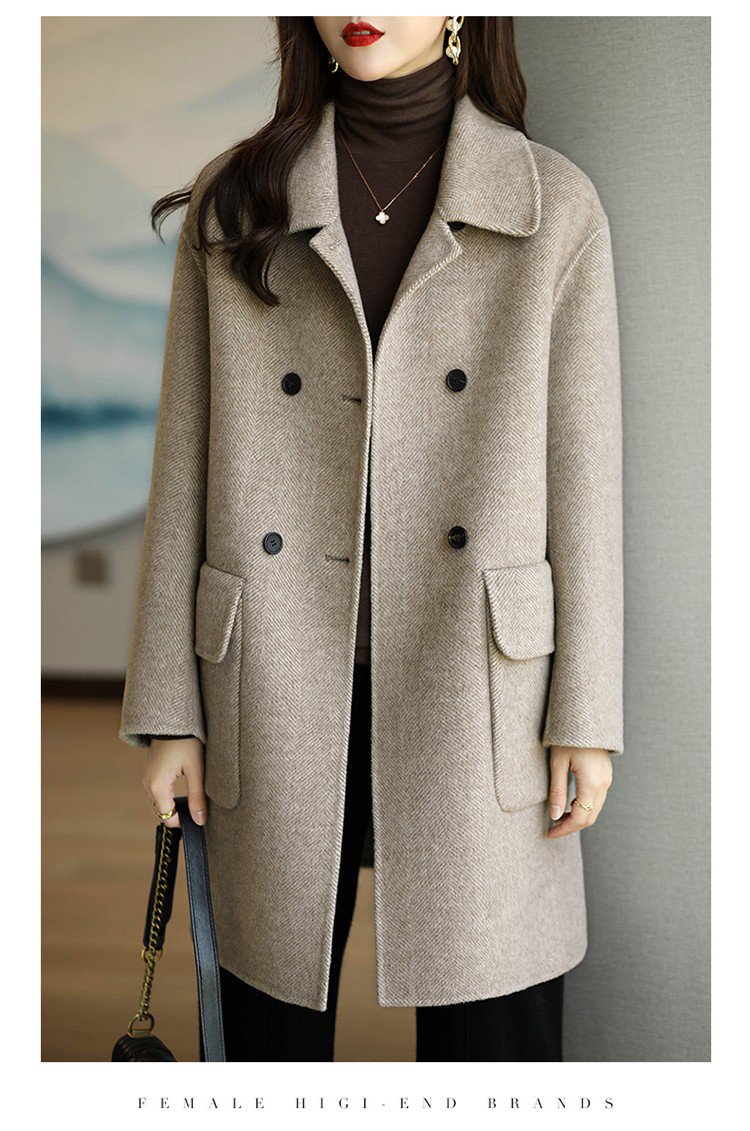 上品なノーカラーコート素材感