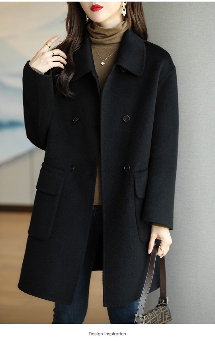 春秋向けノーカラーコートフロントデザイン