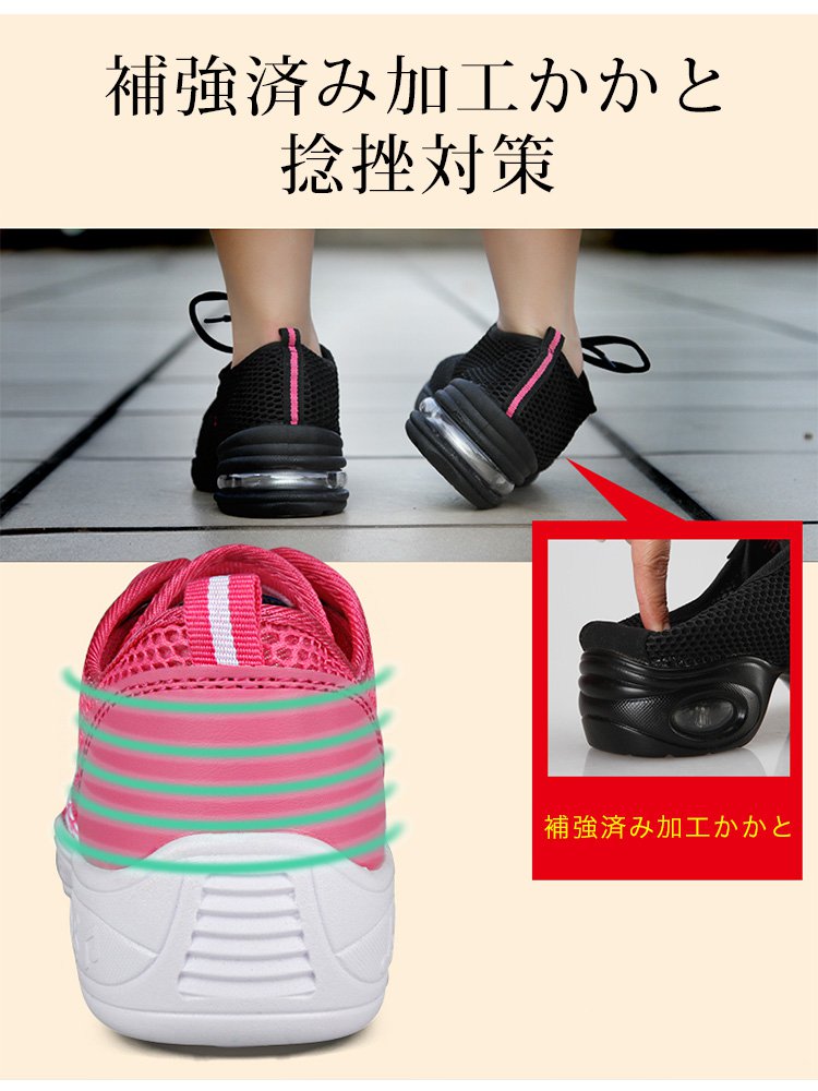 【レディースダンススニーカー】メッシュアッパー、通気性抜群、衝撃吸収、軽量、高反発性、突き通し防止かかと