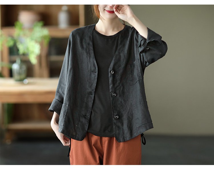 袖や裾のディテールが分かる綿麻カーディガン画像